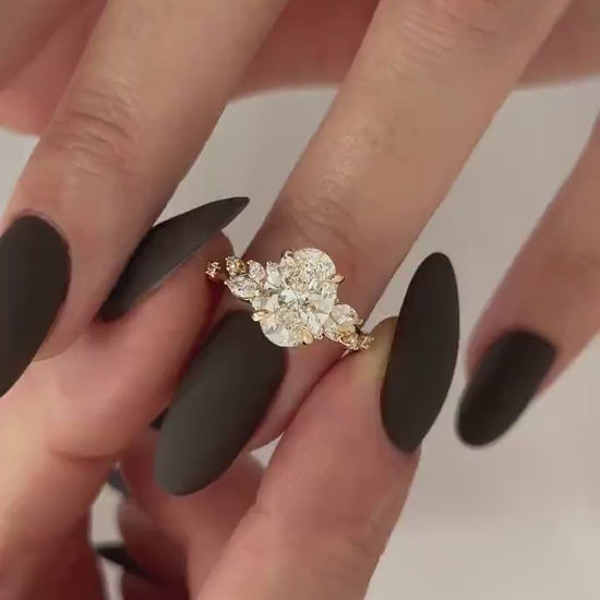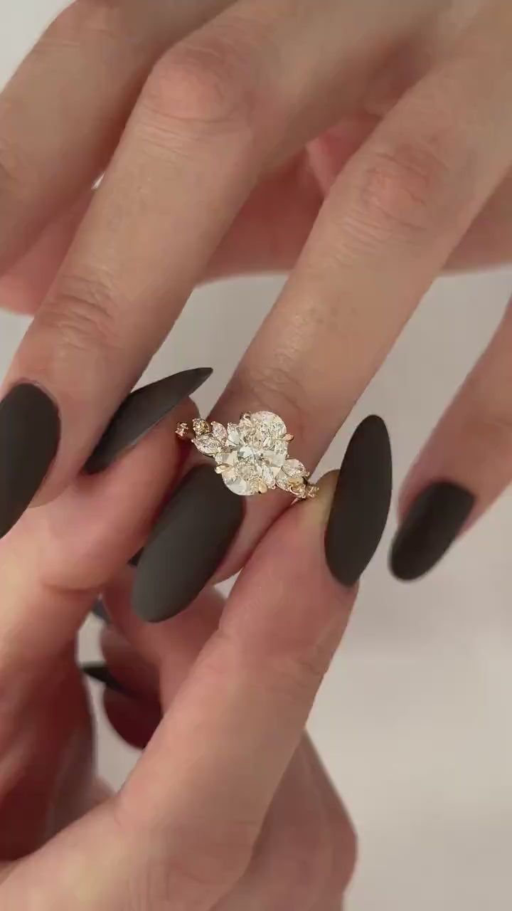 Anillo de Compromiso Inspirado en la Naturaleza con Diamante Ovalado de Laboratorio de 2 Quilates