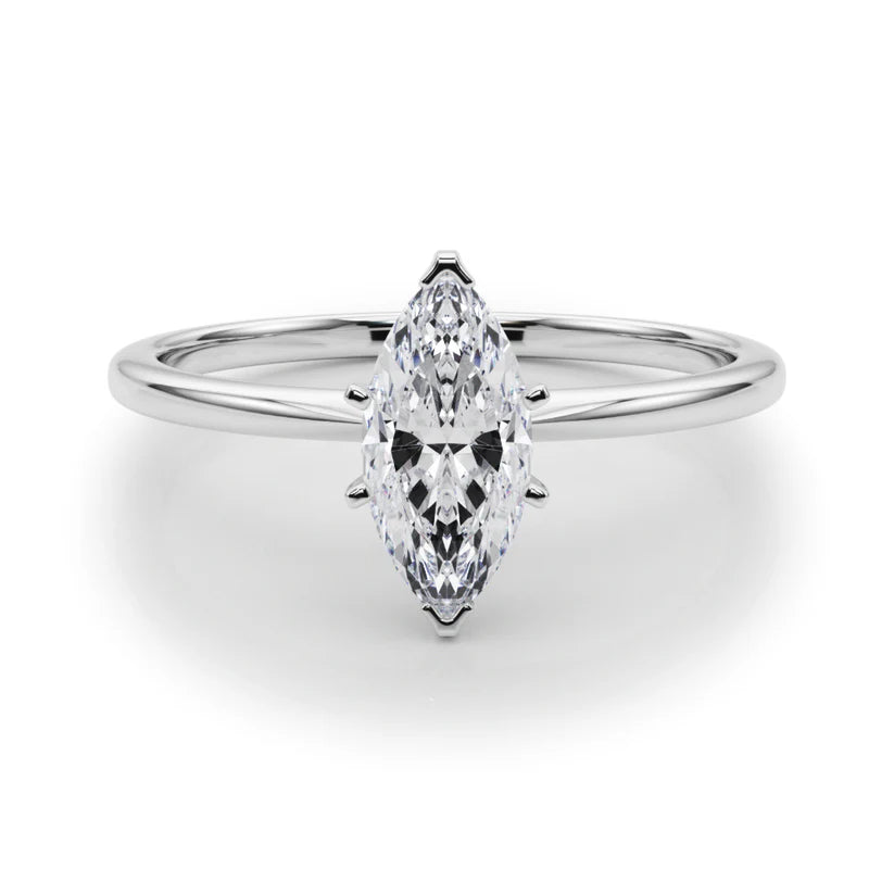 Este anillo solitario de diamante creado en laboratorio de corte marquise de 1 quirate es un clásico atemporal con una silueta alargada distintiva que realza el dedo. Presenta un diamante de color D y claridad VS2 engastado en una elegante banda de oro blanco de 14k, el limpio engaste de 6 garras resalta el brillo y la forma del corte marquise. Creado éticamente y certificado por IGI, este anillo solitario es una impresionante mezcla de elegancia y responsabilidad. ¡Elige entre oro blanco sólido de 14k, oro amarillo de 14k, oro rosa de 14k.