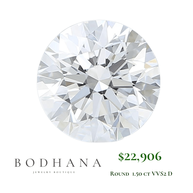 Este diamante redondo de 1.50 quilates es una pieza de lujo con un color D, el más puro en la escala de clasificación, y una claridad VVS2, sin inclusiones visibles. Su corte excelente (EX) garantiza una dispersión de luz óptima, logrando un brillo espectacular. Con certificación IGI, este diamante es una opción premium para quienes buscan exclusividad y calidad insuperable.